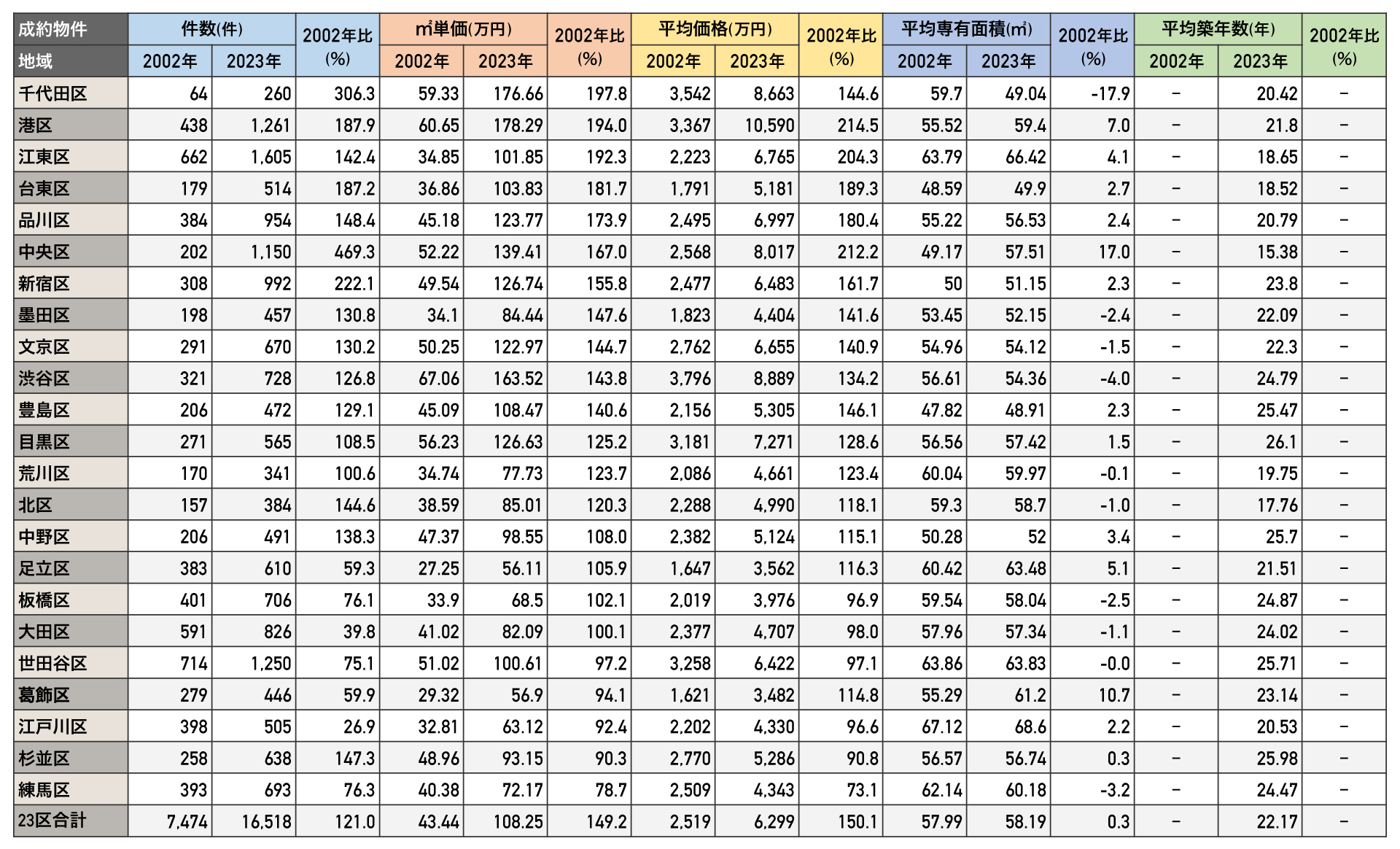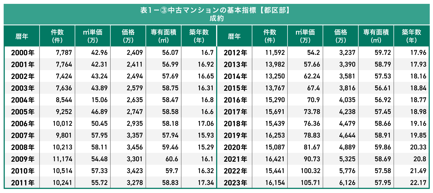 中古マンションの基本指標【都区部】成約データ