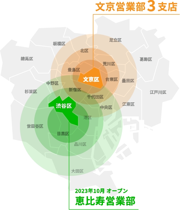 2023年10月、都心・城南エリアを強化すべく恵比寿に新拠点をオープン。私たちの強みは、独自のネットワークから収集した豊富な物件情報にあります。今後は東京23区全域でのサービス拡張を進め、各エリアに支店を開設することで、地域に密着した高品質なサービスを提供することを目指します。創業18年の経験を活かし、お客様一人ひとりに合った最良の住まい選びをサポートします。長年文京区で培った信頼と実績を背景に、『住まいSOL』として新たな一歩を踏み出しました。